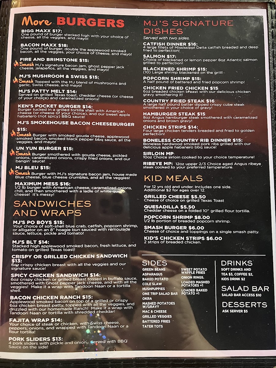 Welcome to MJ's Bar and Grill, a culinary gem located at 8300 AR-23 in Branch, Arkansas. This vibrant establishment impresses with its diverse menu, featuring mouthwatering burgers like the Bacon Maxx and Un Yun Burger, alongside signature dishes such as Country Fried Steak and Glazed or Blackened Salmon. Whether you're in for a hearty dinner or a kid-friendly meal with Cod Bites and Grilled Cheese, there's something for everyone.